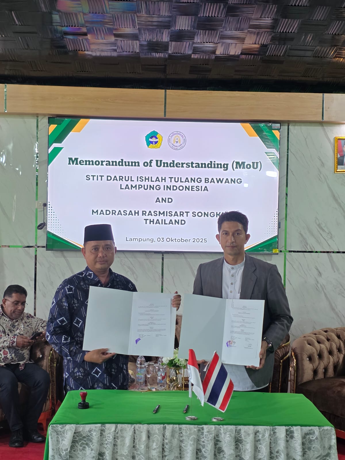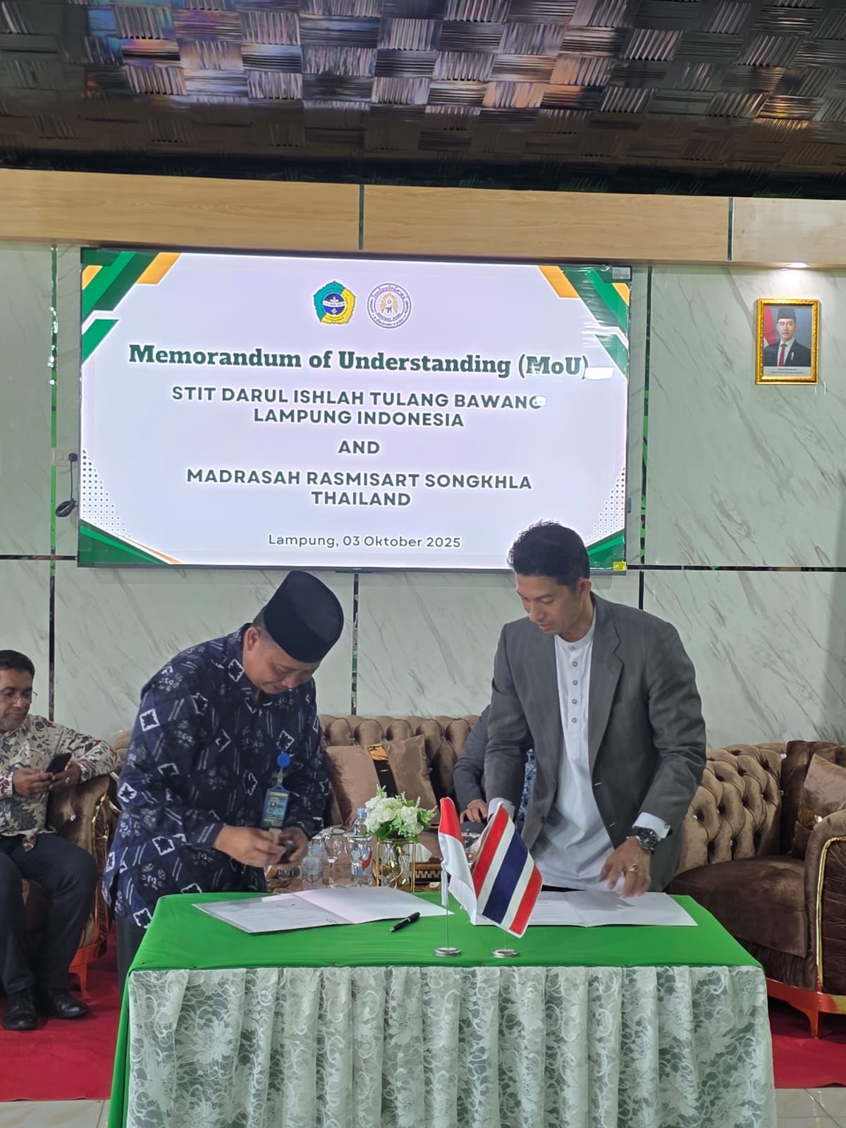 Bertepatan Hari Jum’at, 03 Oktober 2025, Sekolah Tinggi Ilmu Tarbiyah (STIT) Darul Ishlah Tulang Bawang yang dihadiri oleh Tohir Muntoha, S. Pd., M. Pd. I. (Ketua STIT Darul Ishlah ) dan Khomsinnudin, M. Pd. dengan beberapa perguruan tinggi agama Islam dari dalam negeri ataupun luar negeri diantaranya Thailand, Philipina dan Timor Leste, semoga semakin memperkuat kolaborasi sebagai langkah strategis untuk meningkatkan kualitas akademikmaupunnonakademik baik dalam bidang penelitian dan pengabdian masyarakat.
